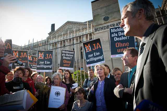 Aktion gegen das Meldegesetz vor dem Bundesrat – Fotos cc-by-nc: Ruben Neugebauer für Campact