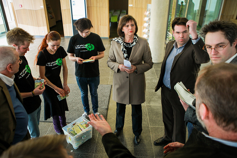 Schon vor dem Gespräch drängt uns das Ministerium ins Abseits. Den öffentlichen Übergabetermin während der Landwirtschaftsmesse „Grüne Woche“ im Januar nimmt Ministerin Aigner nicht an. Auf Nachfrage bietet uns ihr Referent ein Gespräch und eine Übergabe der Unterschriften im Ministerium an. Gespannt auf den inhaltlichen Austausch, ließen wir uns darauf ein, auf eine öffentliche Übergabe mit Presse zu verzichten. Gestern Nachmittag dann: Kürzung unserer Zeit auf 10 Minuten und Absage des Gesprächsteils.