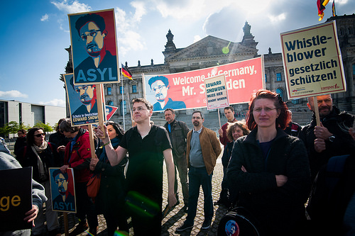 Gemeinsam mit unseren Kooperationspartnern Digitalcourage und dem Whistleblower Netzwerk machten wir heute den Abgeordneten klar: Echte Aufklärung ist nur mit Edward Snowden möglich. Wir schulden Edward Snowden eine sichere Bleibe, für das was er für uns geleistet hat. Ohne ihn hätten wir von dem dichten Überwachungsnetz der Geheimdienste womöglich nie erfahren und hätten uns nicht wehren können.