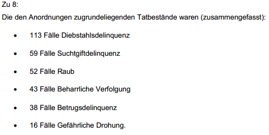 227 Fälle konnten im Berichtszeitraum abgeschlossen werden. Außerdem zeigte sich, dass bei 53,74% der abgeschlossenen Fälle (122 Abfragen) die Daten keinen Beitrag zur Aufklärung geleistet haben. Zusammengefasst bedeutet das: Um in 354 Fällen Daten anfordern zu können – von denen viele der Abfragen sinnlos waren – werden die Standort- und Verbindungsdaten aller Menschen in Österreich auf Vorrat gespeichert. Rechtfertigen diese Zahlen tatsächlich die anlasslose Speicherung aller Verbindungs- und Bewegungsdaten der kompletten Bevölkerung, also über 8 Millionen Menschen? Rechtfertigen diese Zahlen das Risiko, dass die Bewegungs- und Persönlichkeitsprofile von Millionen in falsche Hände gelangen?