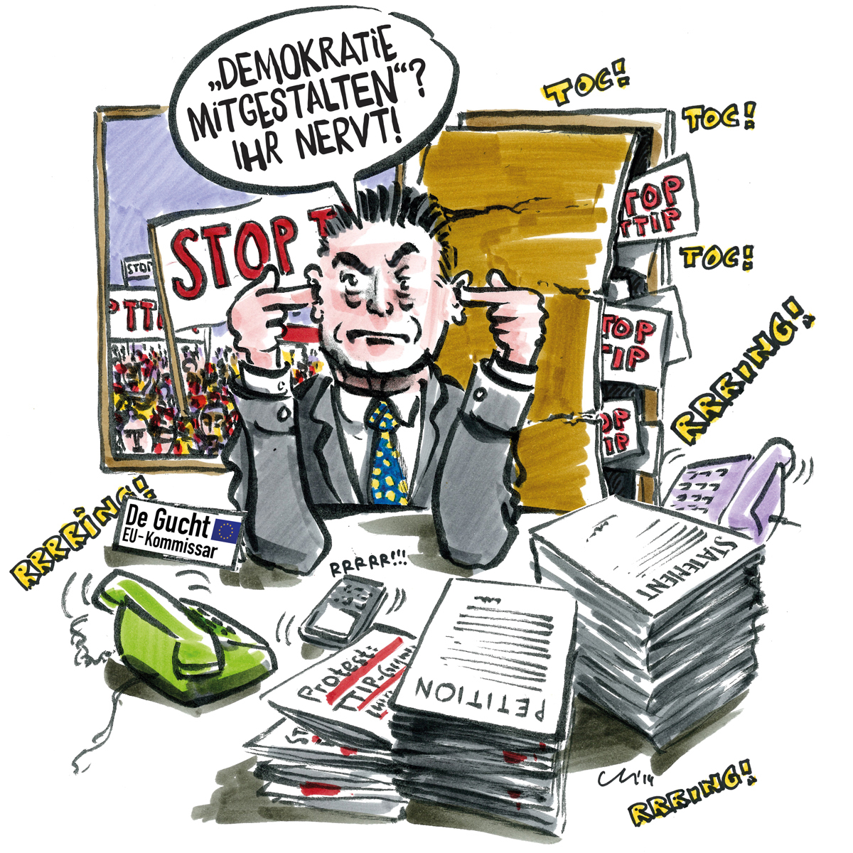 Als ich das las, habe ich mich furchtbar geärgert: EU-Kommissar Karel De Gucht bezeichnet die etwa 150.000 Antworten von Bürger/innen auf die von ihm vorgeschlagenen Investorenklagen in den Handels- und Investitionsabkommen TTIP und CETA als „regelrechte Attacke“. Wie bitte? Die Beteiligung an einer EU-Konsultation wird als Angriff gewertet? Was ist denn das für ein demokratisches Verständnis!
