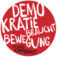 Campact wird 10 Jahre! Das wird gefeiert am 14. und 15. November beim Jubiläums-Kongress „Demokratie braucht Bewegung“ in Berlin, zu dem man sich am besten schnell hier anmeldet, so lange noch Tickets übrig sind:
