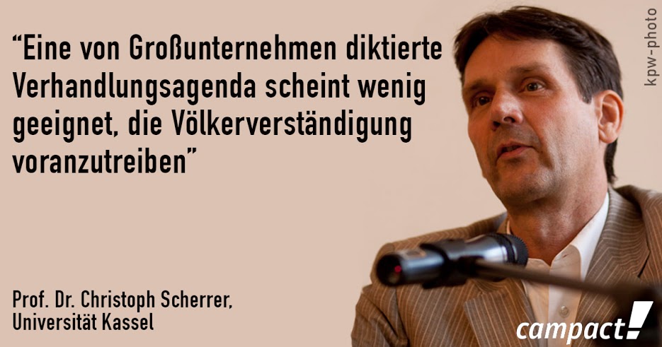 Aber auch innerhalb des westlichen Lagers könnten TTIP Konflikte verschärfen, analysiert Prof. Dr. Christoph Scherrer, denn das Abkommen mit seiner Liberalisierungsagenda schafft regional unterschiedlich verteilt Gewinner und Verlierer. Er kommt zu dem Schluss: „Eine von Großunternehmen diktierte Verhandlungsagenda scheint wenig geeignet, die Völkerverständigung voranzutreiben.“