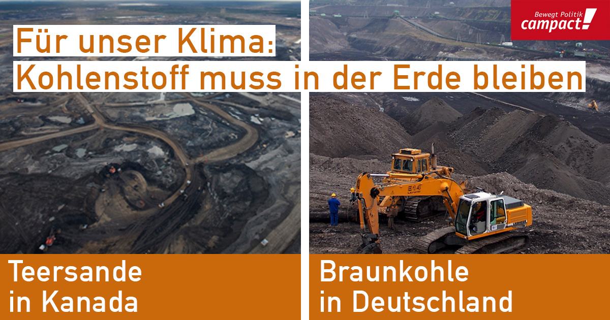 Doch „unverbrennbaren Kohlenstoff“ gibt es nicht nur in Kanada. Unsere Teersande liegen im Rheinischen Revier, in Mitteldeutschland und der Lausitz. Jede Menge unverbrennbarer Kohlenstoff in Form von Braunkohle. Deutschland verbrennt mehr Braunkohle als jedes andere Land der Welt, und es reicht noch für 293 Jahre. Verbrennung von Braunkohle ist eine völlig anachronistische Form der Stromerzeugung, die pro erzeugter Kilowattstunde Strom am meisten CO2 in die Atmosphäre bläst. Braunkohle, das ist ein Klimakiller.