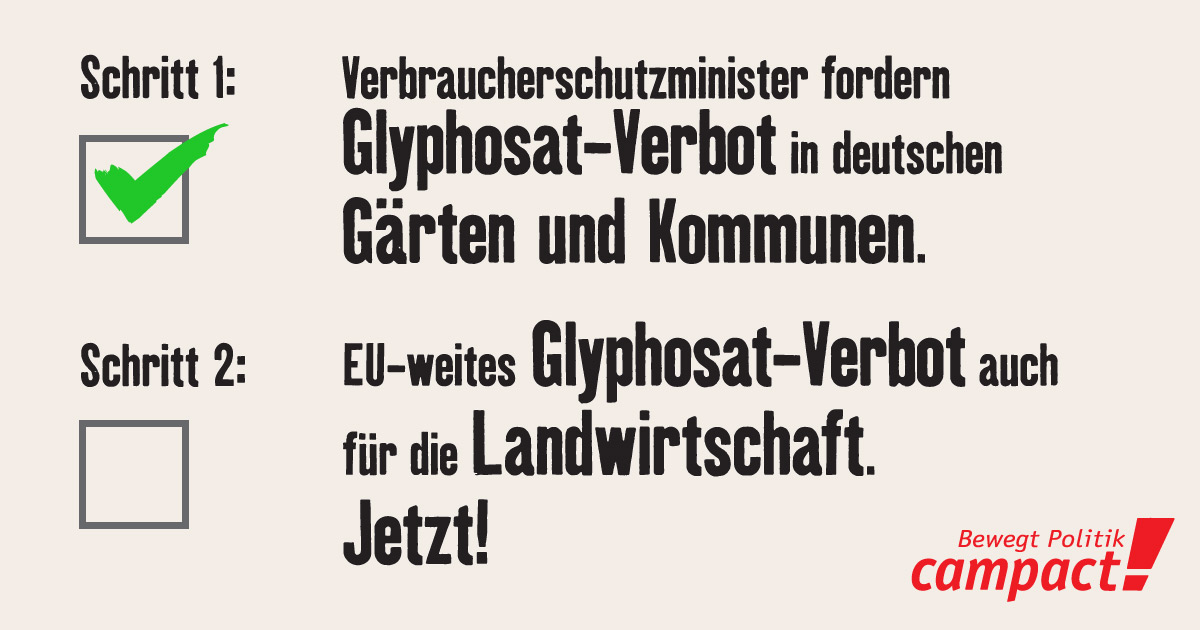 ![Erster Erfolg: Glyphosat in deutschen Gärten und Kommunen soll verboten werden. Grafik: Campact/Zitrusblau [CC BY-NC-SA 2.0 DE]](https://www.campact.de/blog/wp-content/uploads/2015/05/Glyphosat-Webgrafiken_Sonder-1200x630_01.jpg)