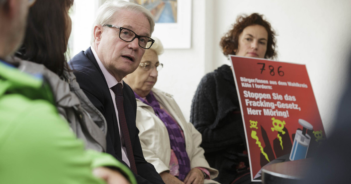 - Auch die Verhandlungsführer der CDU, Karsten Möring und Marie-Luise Dött bekamen Besuch in ihren Wahlkreisbüros in Köln und Oberhausen. Sie nahmen sich Zeit für ausgiebige Gespräche – mussten sich aber auch viel Kritik anhören, weil sie das geplante Fracking-Gesetz befürworten.