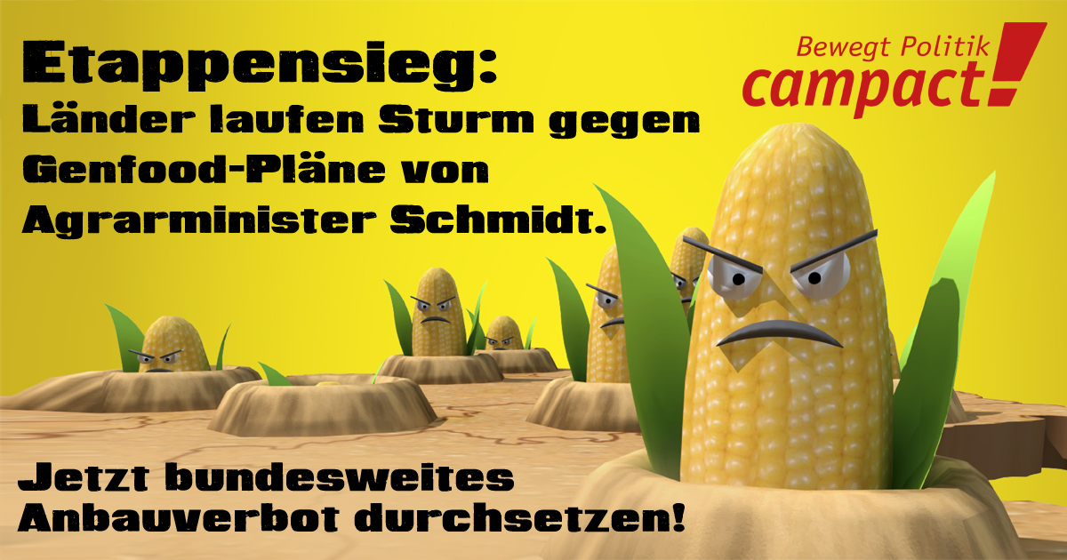 Eigentlich wäre es so einfach endlich Schluss mit dem Anbau gentechnisch veränderter Pflanzen zu machen: Seit März ist eine EU-Richtlinie in Kraft, die den Mitgliedsstaaten erlaubt noch einfacher „Nein“ zu Genfood auf ihren Felder zu sagen. Doch Agrarminister Schmidt stellt sich stur. Seine Pläne mögliche Verbote auf die Länderebene abzuwälzen spielt Monsanto & Co. in die Hände: Wenn es in einem Bundesland nicht klappt, versuchen sie es einfach beim nächsten. Ein Flickenteppich droht.
