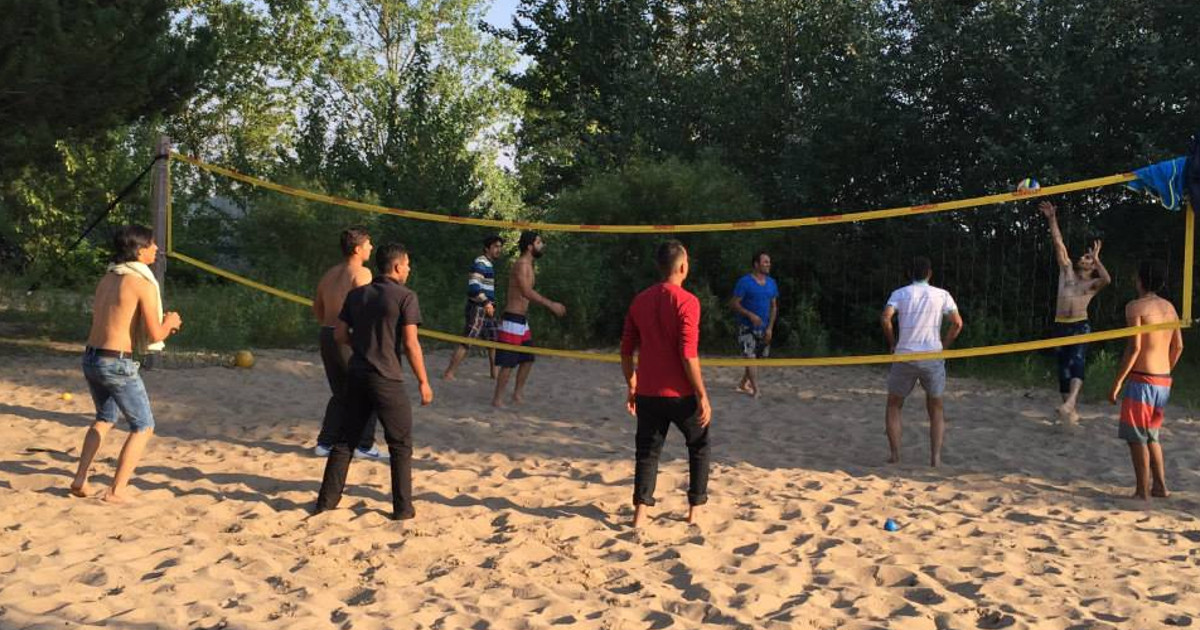 Der vorsätzliche Gutmensch Garip reagiert auf 37 hungrige Mehrmenschen mit einem lächelnden Achselzucken. Sofort sind noch mehr Pommes und noch mehr Limo da, sind 18 Handtücher in den Wohnwagen gesammelt, eine Riesendecke von HulahoupSabine, vier Kinderbadehosen mit Seepferdchenabzeichen die heute nur schmücken und nix beweisen. Kinder vom Platz schleppen Volleybälle, Bocciakugel und Frisbeescheiben ran, KInder brauchen keine Sprache, Kinder brauchen Frieden.