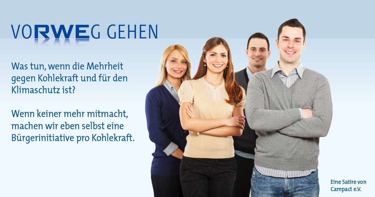 Dass Vattenfall und RWE nichts vom Kohleausstieg halten, das dürfte kaum überraschen – auch wenn es sicher schon ökonomisch gesehen nicht die beste Idee ist, so zu tun, als könnte die Braunkohle ewig weiterlaufen. Doch wenn sie eine Pro-Kohle-Position vertreten, dann sollten das die Lobbyisten doch bitte offen äußern und sich nicht hinter fingierten Bürger-Initiativen verstecken. Oder hat da etwa jemand Angst, dass Werbung für die Braunkohle sonst nicht mehr so gut ankommt?