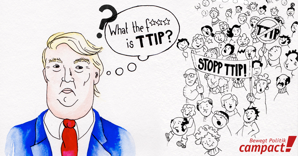 Seit der Wahl Donald Trumps zum US-Präsidenten lesen wir immer wieder, dass TTIP an ihm gescheitert sei. Selbst die EU-Kommission sprach kurz nach der Wahl davon, dass TTIP jetzt „im Gefrierschrank“ schlummere. Wir klären auf, wer TTIP wirklich ausgebremst hat – und welches Abkommen ganz nach Trumps Geschmack ist.