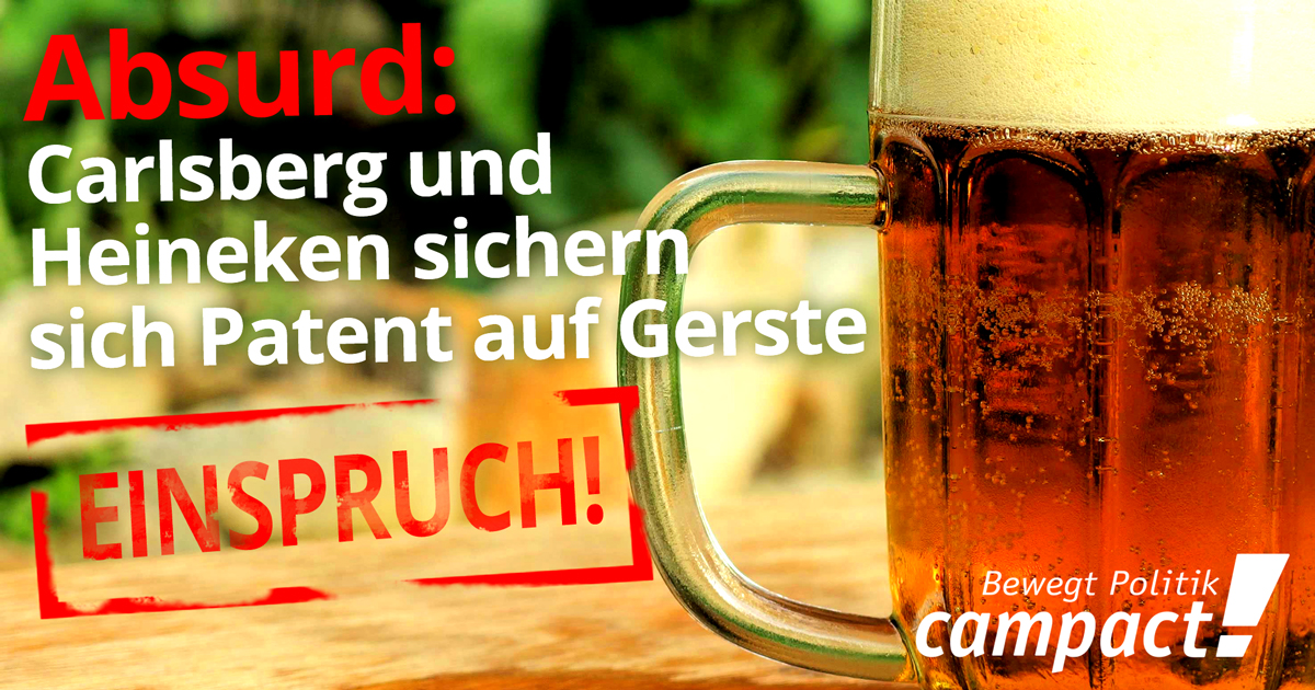 In der Vergangenheit hatte das Europäische Patentamt immer wieder versucht, die Patentverbote durch juristische Tricks auszuhebeln. So auch bei den Patenten der Bierkonzernen Carlsberg und Heineken auf Gerste. Das EPA erteilte beide Patente 2016 – und sie basieren auf zufälligen Mutationen im Erbgut der Gerste. Deren Ernte soll sich deswegen besonders gut für das Bierbrauen eignen. Die Schutzrechte erstrecken sich auf Gerste aus konventioneller Züchtung und umfassen die Pflanzen, deren Ernte, den Prozess des Bierbrauens, Produkte wie Malz und Würze sowie jegliche auf diese Weise produzierte Getränke. Carlsberg und Heineken versuchen so ihre Marktmacht auf Kosten von Verbrauchern, Landwirten und andere Brauereien auszuweiten.