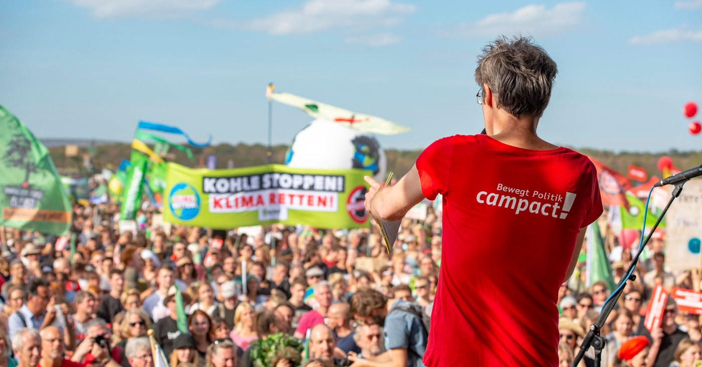 Campact war eine der ersten Organisationen, die den Protest der Jugendlichen und jungen Erwachsenen von Fridays for Future für mehr Klimaschutz unterstützte, unter anderem durch die Finanzierung von Demo-Bühnen und Lautsprecheranlagen, durch die Mitmobilisierung zu den Freitags-Demos und durch die Fortbildung der Ehrenamtlichen in Pressearbeit, Fundraising und Verteileraufbau. Zum Klimastreik am 20. September 2019 mit 1,4 Millionen Teilnehmer*innen in ganz Deutschland hatte Campact über seinen Verteiler von damals zwei Millionen Menschen zur Teilnahme aufgerufen.
