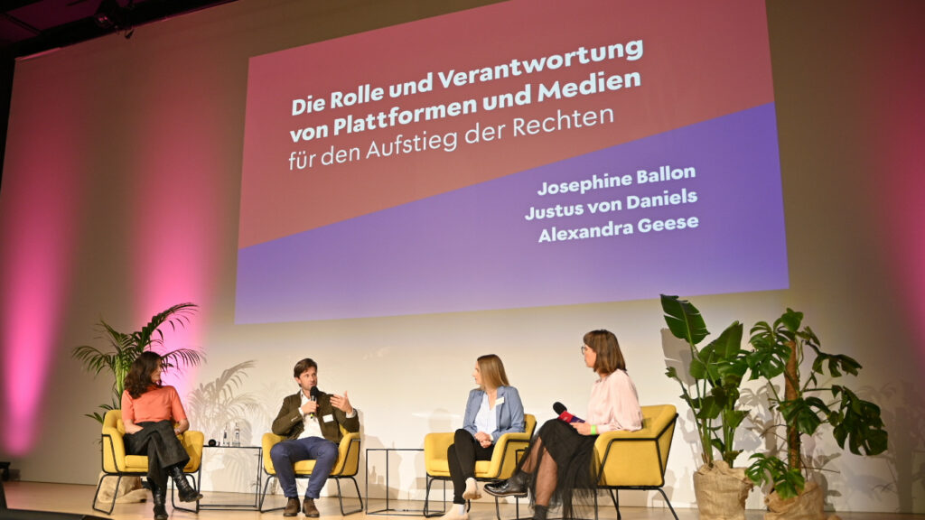 Bei der Demokratie-Konferenz haben die Moderatorin und Journalistin Boussa Thiam und Journalistin und Buchautorin Alice Hasters erklärt, wie rechter Antifeminismus insbesondere über die sozialen Medien in unseren Alltag eindringt. Wie Frauen in den sozialen Netzwerken traditionelle Rollenbilder glorifizieren, wie schnell mensch bei TikTok auf frauenfeindliche Inhalte trifft und wie junge Männer zunehmend rechtsextremer werden.