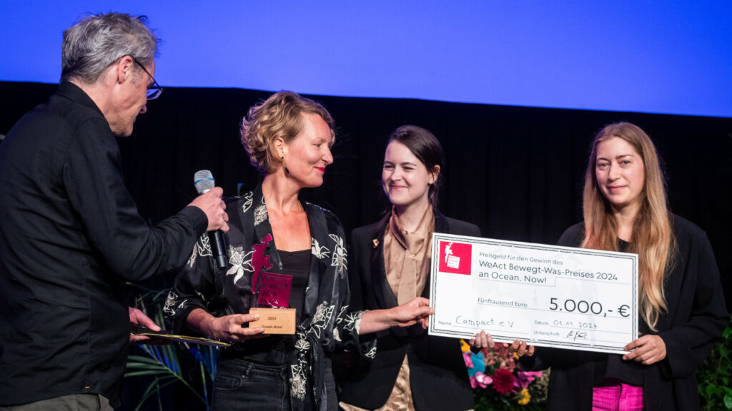 Dann wurde es nochmal extra feierlich: Zum ersten Mal in der Geschichte von Campact wurde der „WeAct Bewegt-Was-Preis“ verliehen. In diesem Jahr geht er an die Ozeanschutzorganisation Ocean.Now!