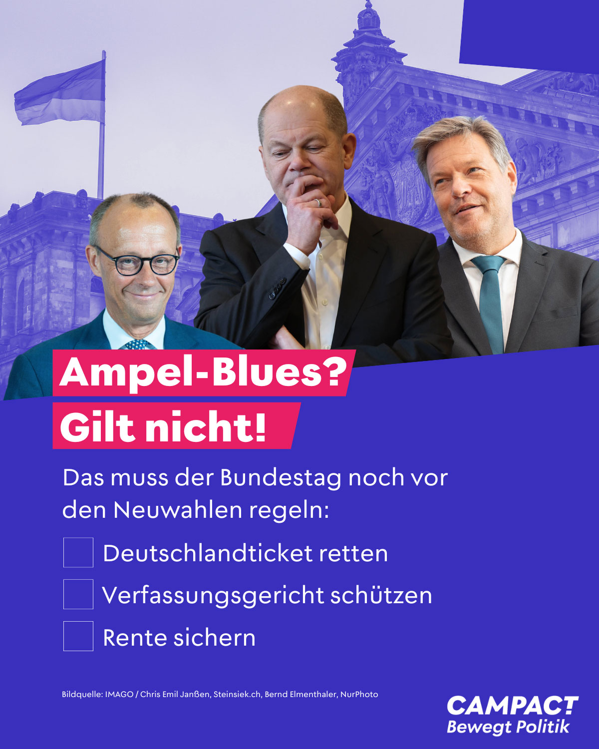 Vertrauensfrage, schnelle Neuwahlen – all das löst Unsicherheit aus. Das Problem ist jetzt: Die Rechtsextremen um Spitzenkandidatin Alice Weidel sind sehr gut darin, mit Emotionen Politik zu machen. Als Kampagnen-Organisation setzt sich Campact seit 20 Jahren für Klimaschutz, soziale Gerechtigkeit und den Schutz unserer Demokratie ein. Damit diese Themen nicht untergehen, bitten wir Dich: Schließe Dich an – abonniere jetzt unseren Newsletter.