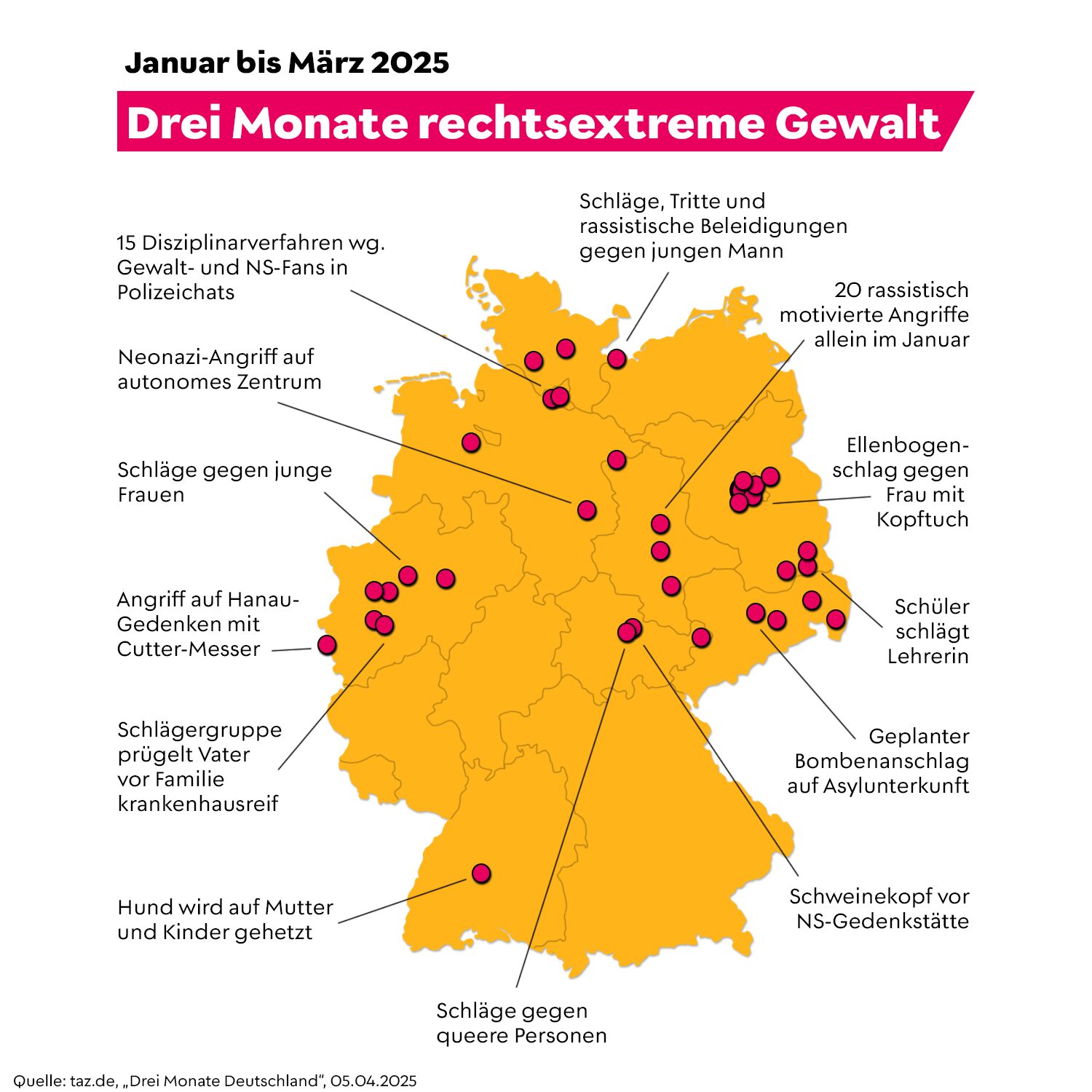 Darüber hinaus zeigt sich ein weiterer Trend, spätestens seit der vergangenen, vorgezogenen Bundestagswahl im Februar: Die Grenze des Sagbaren verschiebt sich immer weiter nach rechts. Begriffe aus der NS-Zeit werden ohne kritische Einordnung genutzt. Formulierungen und Forderungen der AfD werden fast wortwörtlich übernommen oder umgesetzt.
