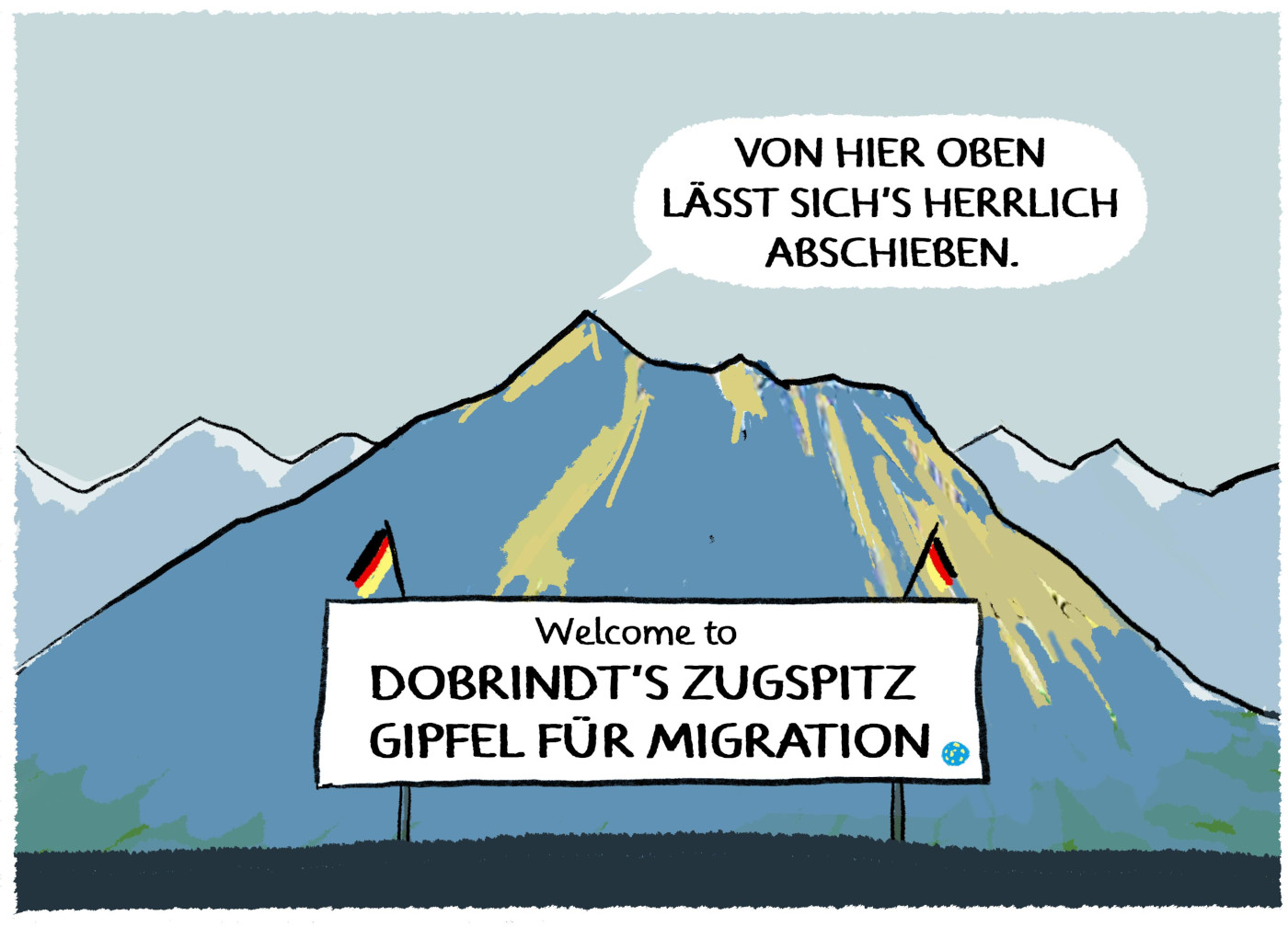 Bundesinnenminister Alexander Dobrindt (CSU) ließ es sich nicht nehmen, eine beeindruckende Kulisse für seinen „Migrationsgipfel“ auszuwählen. Hoch oben über den Dächern Deutschlands und der Alpen, auf der Zugspitze, empfing er ausgewählte europäische Politiker*innen zum „Zugspitz Summit on Migration“, so der offizielle Titel – also zum Zugspitzen-Gipfel zur Migration. Was so ergebnisoffen und harmlos klingt, hat eine klare Agenda: gesamteuropäisch eine schärfere Migrationspolitik zu verabschieden.
