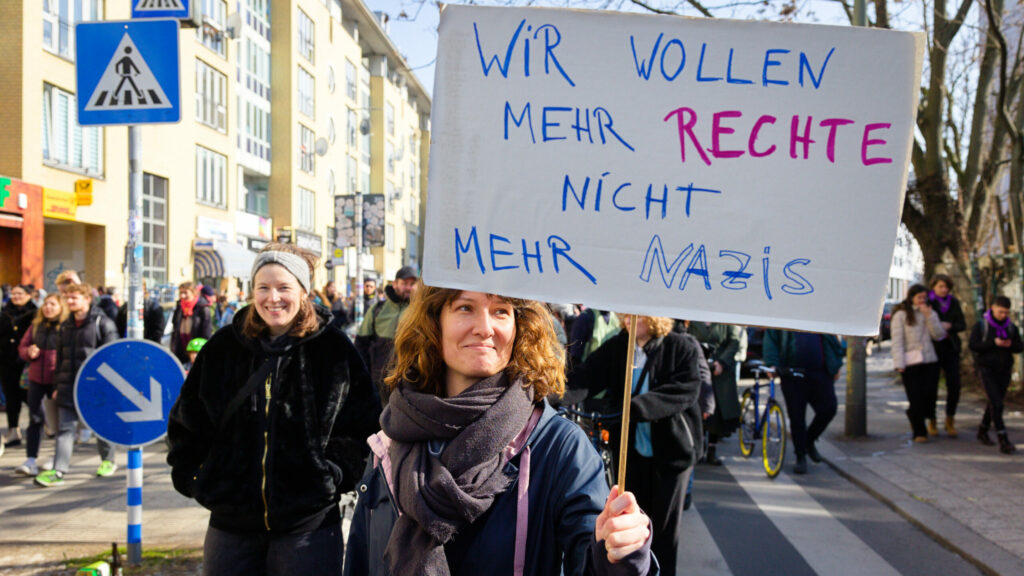 Gleichberechtigung ist keine Selbstverständlichkeit. Deshalb ruft ein breites Bündnis feministischer Gruppen am Sonntag, 19. Januar, in Berlin zu einer Demo für Frauenrechte und Selbstbestimmung auf. Campact unterstützt die Demo. Gemeinsam zeigen wir am 19. Januar in Berlin: Wir dulden keinen Rückschritt bei Frauenrechten! Mit Friedrich Merz (CDU) droht ein Kanzler, der ein rückständiges Frauenbild vertritt, Selbstbestimmungsrechte einschränken will und Gewalt gegen Frauen nicht bekämpft. Gemeinsam stellen wir uns gegen antifeministische Kräfte – weltweit und bei uns in Deutschland. Sei dabei und zeige: Wir lassen uns nicht zurückdrängen!